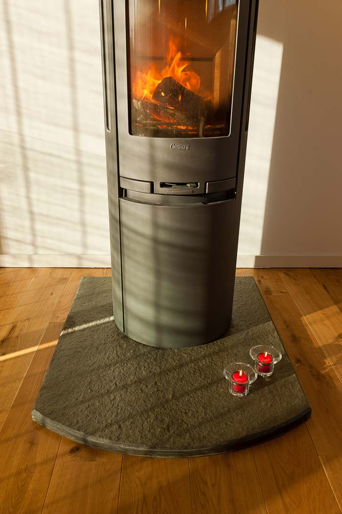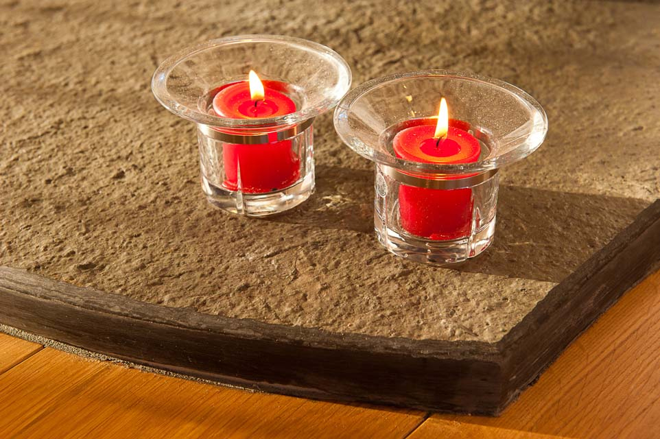 close-up of dressed edges, 35mm thick dark, riven Caithness slate hearth